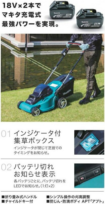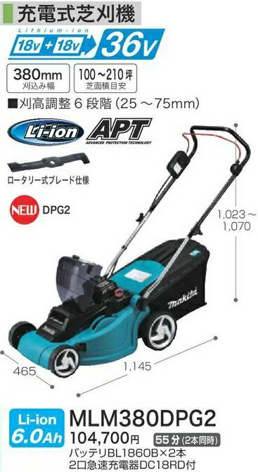 マキタ 充電式芝刈機 <MLM380DPG2> 18V+18V⇒36V 6.0Ah バッテリ2本・2口急速充電器付 セット品 刈込幅380mm 【送料無料】【刈払機 最安値挑戦 激安 通販 おすすめ 人気 価格 コンパクト パワフル 女性 簡単】 商品価格:72,641円 レビュー件数:0件 レビュー平均:0(5点満点) 楽天で購入 トップページへ