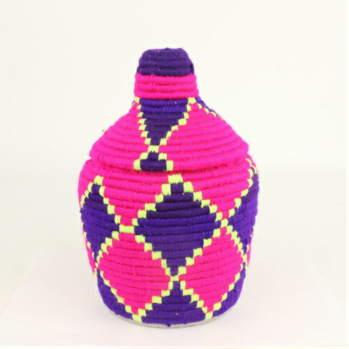 アクリル毛糸カラフル蓋つきかご ベルベルバスケット 小 モロッコかご