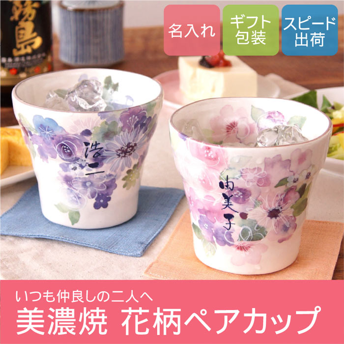 商品情報 【 名入れOK! 美濃焼 花柄 焼酎カップ 夫婦セット 】 ■酒器/焼酎グラス/ロックグラス/陶器/ 湯呑茶碗としてもお使いいただけます。